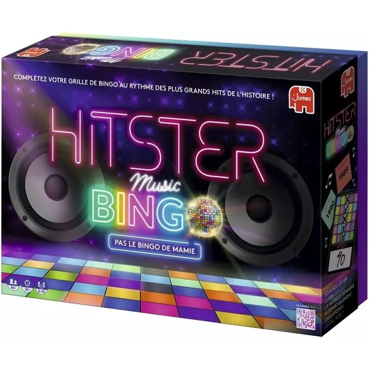 Avec Hitster Bingo, tout le monde joue en même temps à chaque tour. L’extrait est écouté et chacun inscrit sa réponse sur sa grille en fonction de la couleur de la case. Si la réponse est bonne, cochez la case de la couleur correspondante sur sa grille. Remplissez une ligne (comme au Bingo !) et gagnez la partie ! Avec un plateau recto/verso, on peut choisir des parties faciles ou plus expertes. Une boule à facettes est incluse dans le jeu pour tirer au sort la couleur pour plus de festivités !