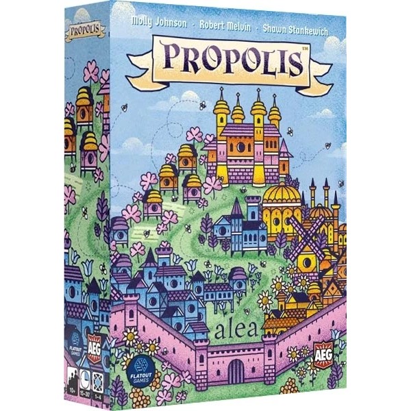 Au cœur d’un royaume en fleurs, les ruches s’élèvent et les abeilles rivalisent d’ingéniosité. Déployez vos ouvrières, transformez les paysages en bâtiments prestigieux et érigez un Palais digne d’une reine. Dans Propolis, façonnez votre essaim : seule la ruche la plus prospère dominera le royaume. Dans le jeu Propolis, chaque joueur prend la tête d’une colonie d’abeilles ambitieuse dans un royaume médiéval luxuriant. Votre objectif : développer votre ruche en construisant des structures, en exploitant les ressources florales et en consolidant votre majorité sur les paysages pour accumuler un maximum de points de prestige. Propolis est un jeu de placement d’ouvrières mêlant gestion de ressources, contrôle de majorité et engine-building (construction de moteur). À votre tour, vous pouvez déployer vos abeilles sur des cartes Paysage afin de récolter des ressources ou déclencher des effets. En fortifiant vos ouvrières, vous sécurisez des emplacements stratégiques et optimisez vos gains. Mais attention : lorsque toutes les cases d’un paysage sont occupées, une majorité est évaluée, ce qui peut vous rapporter des bonus… ou offrir un avantage décisif à l’un de vos adversaires. La construction de Structures constitue le cœur de Propolis. Chaque carte Structure offre des points de victoire, des ressources permanentes ou des conditions de scoring spécifiques. En développant intelligemment votre moteur économique, vous facilitez vos futures constructions et ouvrez l’accès au prestigieux Palais de la Reine, une carte puissante et unique – pour chaque joueur – qui peut faire basculer la partie. Jouable en solo grâce à un Automa, Propolis bénéficie d’une excellente rejouabilité grâce à ses nombreuses cartes recto-verso et à la variété des possibilités de mise en place. Propolis est un jeu de société stratégique qui séduit autant par sa profondeur que par son esthétique lumineuse et colorée. Entre contrôle de zone, gestion fine de vos ressources et développement progressif de votre tableau personnel, chaque partie offre un équilibre élégant entre optimisation sur le long terme et montée en puissance progressive.